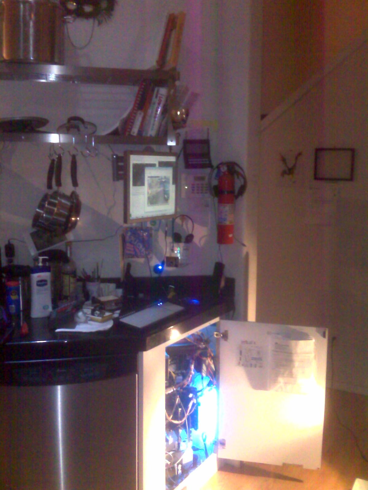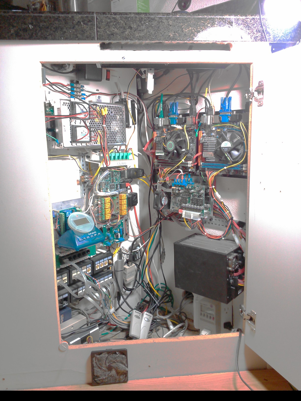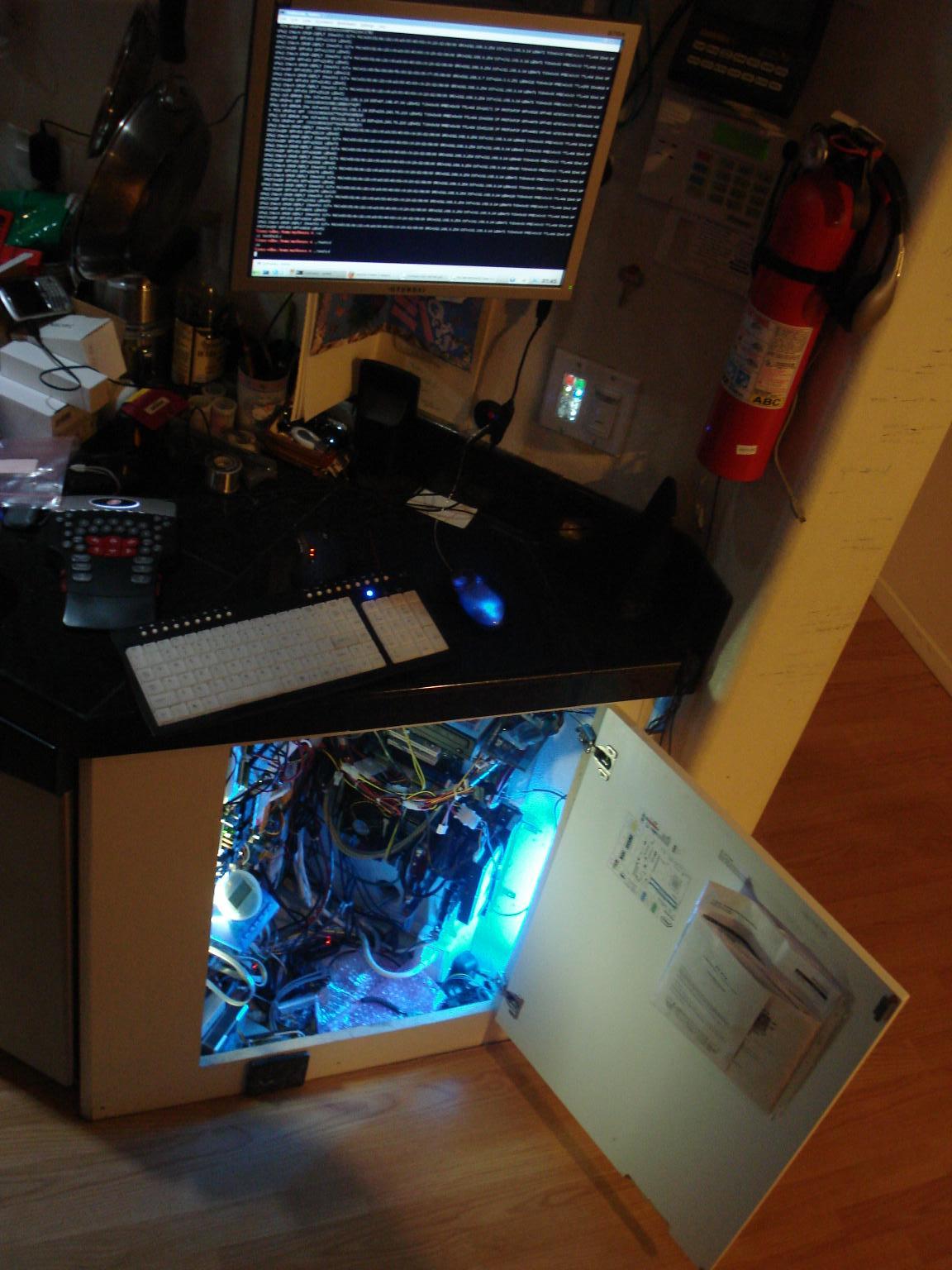 Move your mouse over components to see what they are.I hope to get this running on battery powered by solar at some point. I have done some calculations on how much battery storage capacity I will need to not overly cycle the batteries. I am burning about 250watts currently while under high CPU load. I will be designing some type of circuit to swap from my 24V 750W AC->DC converter to battery and solar when I have excess from the panels or as a UPS when I loose AC. This is the battery enclosure I am looking at. It will hold 6 group 31 12v ~105ah batteries. Using sealed AGM batteries will be more expensive but will avoid any ventlation issues.http://www.vonwentzel.net/Battery/index.html