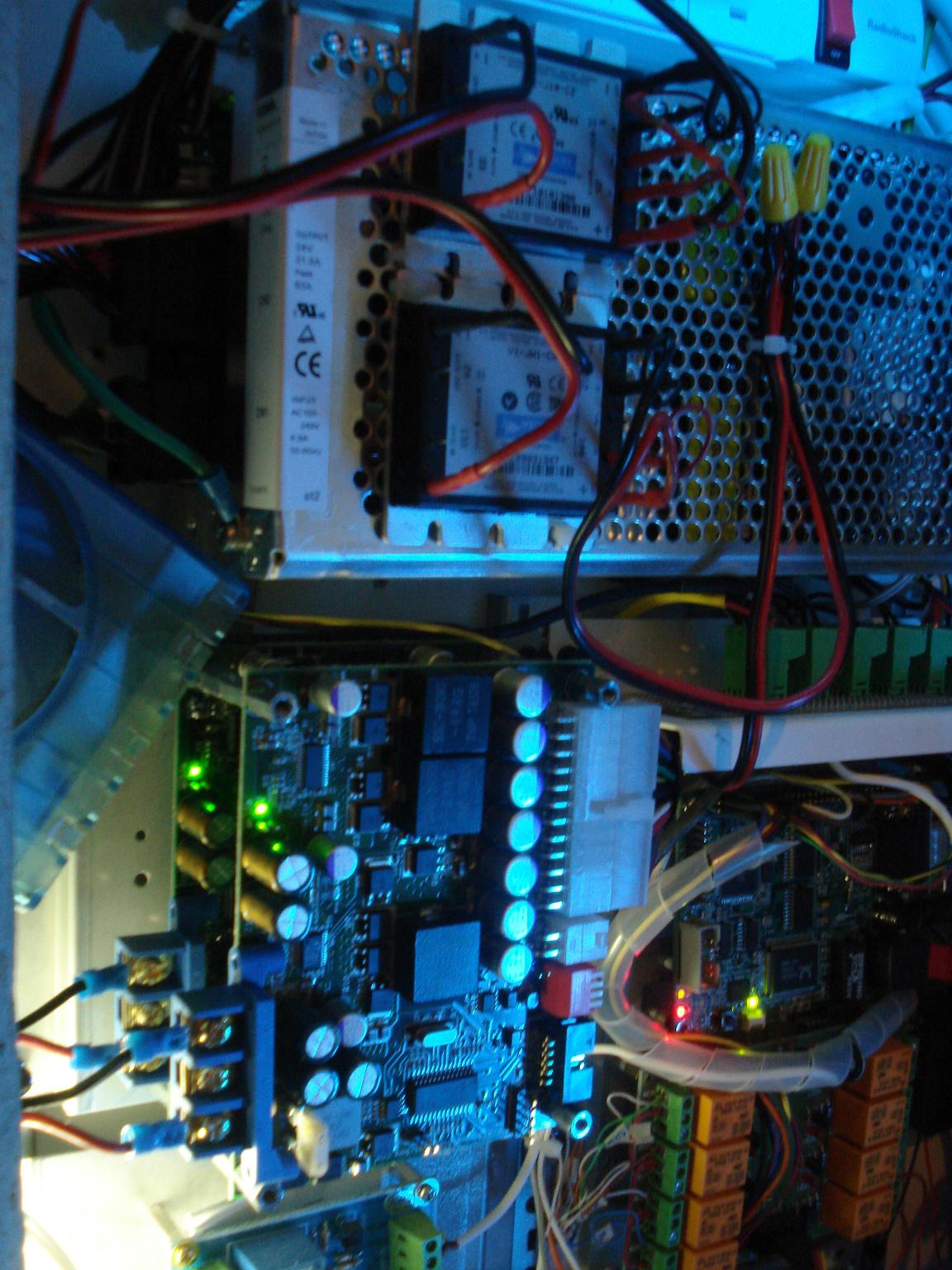 A close look at the M4-ITX and my 24V power supply a COSEL ADA750F-24-J with the Vicor's attached to it.